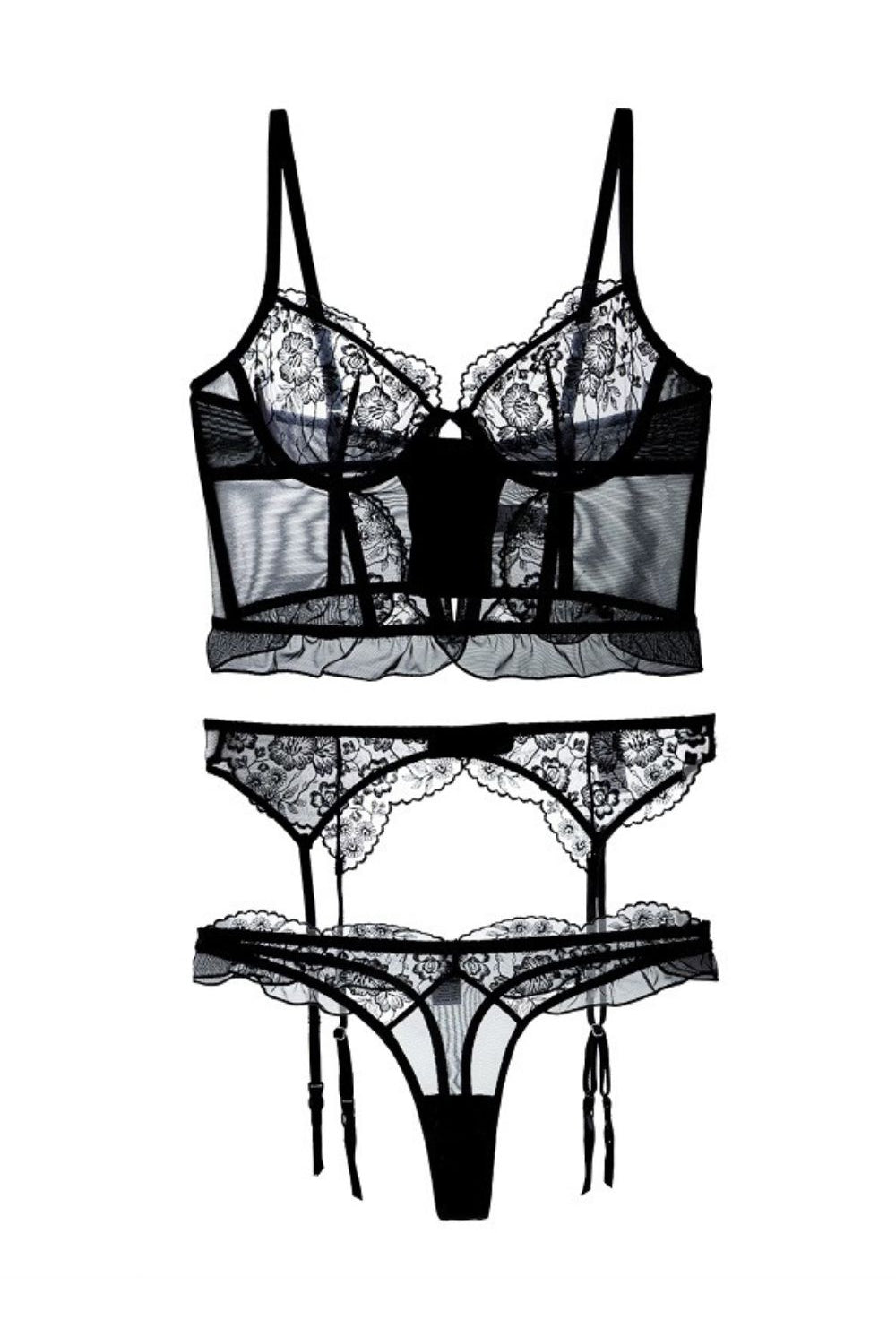 ...exudes sophistication and allure with its sheer details and bold design. Perfect for those who appreciate elegance in every detail, this set offers a blend of luxurious textures and structured support, ensuring a flattering and comfortable fit.