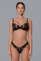 • Delicately embroidered floral patterns on a sheer tulle base.
