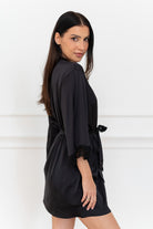 Wrap yourself in sophistication with the Anaïs Luxury Satin Robe. Made from silky-soft satin, this robe drapes effortlessly over the body, creating an elegant and flattering silhouette. The classic black hue is elevated with delicate lace-trimmed sleeves, adding a touch of romantic charm to your loungewear.