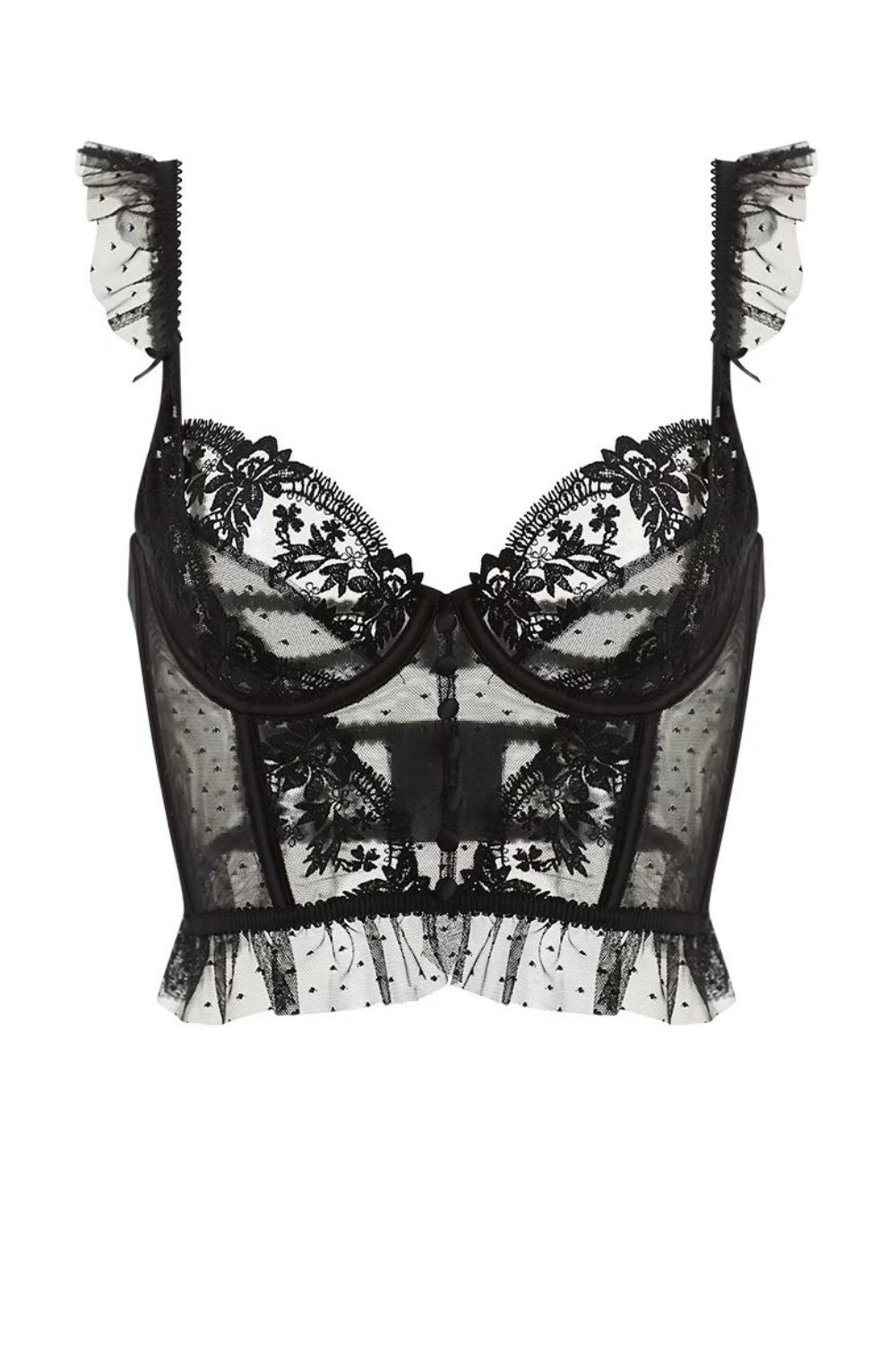 - Balcony-style cups for a flattering lift and shape
