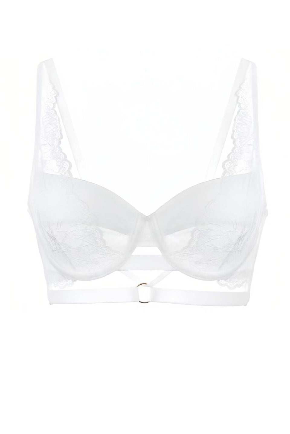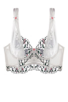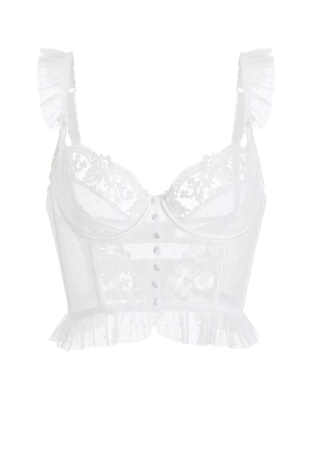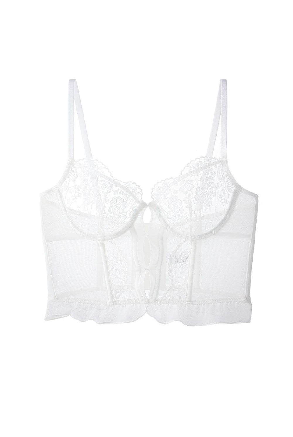 - Intricate floral embroidery on sheer mesh for a delicate yet bold look