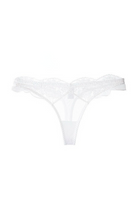The "Elodie" thong captures a perfect blend of delicate charm and bold structure. This corset-inspired set, featuring intricate lace detailing and a flattering silhouette, offers a look that is both timeless and contemporary, making it a versatile addition to any wardrobe.
