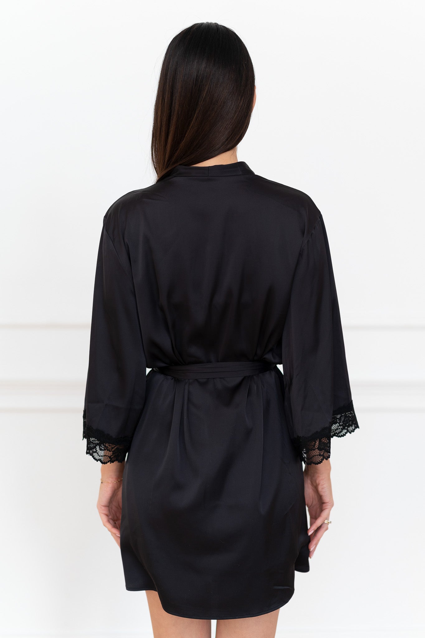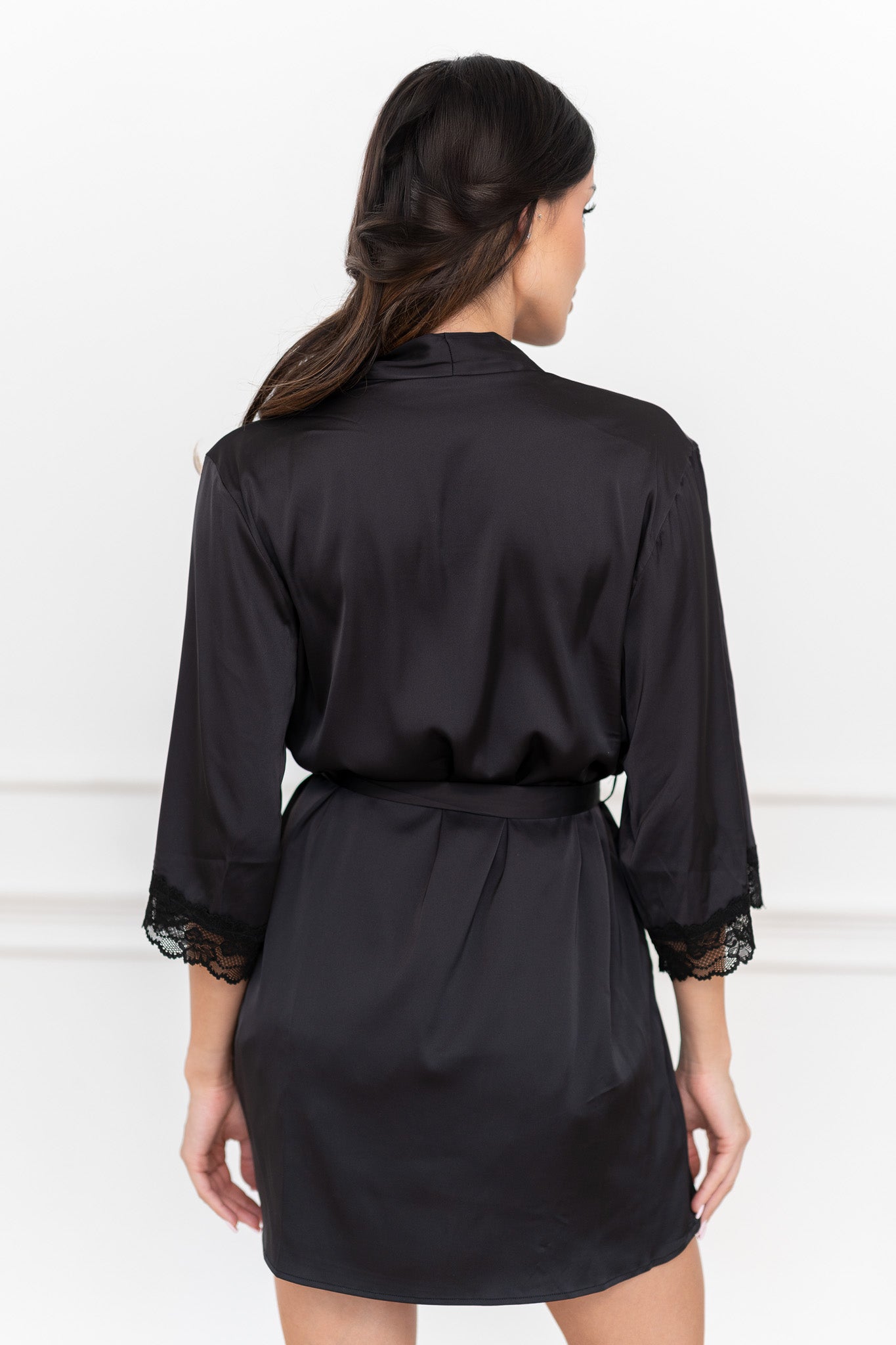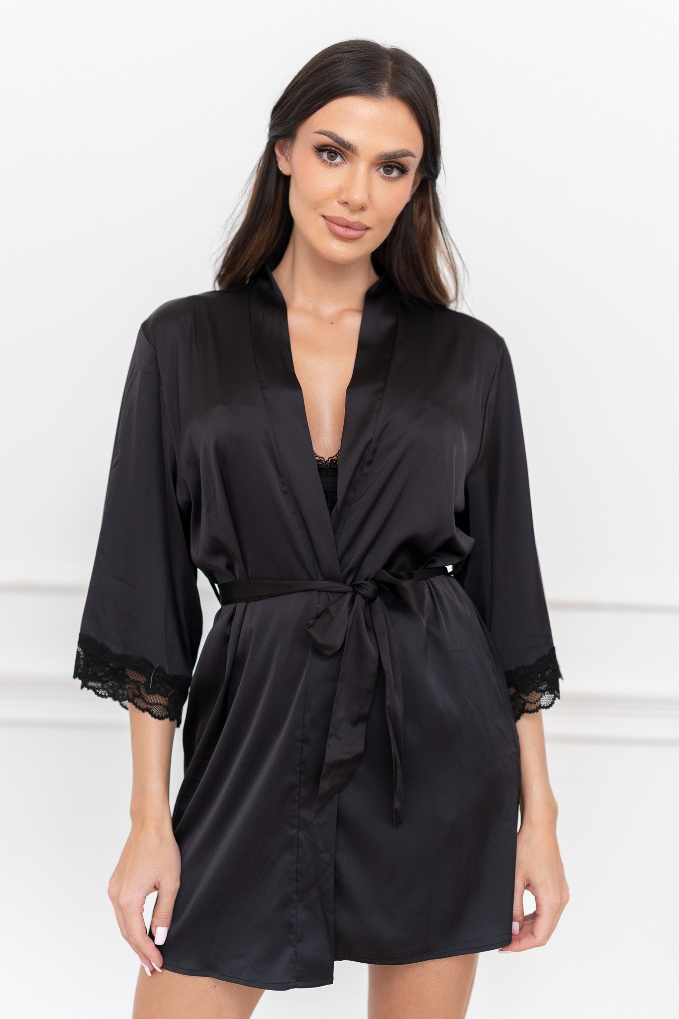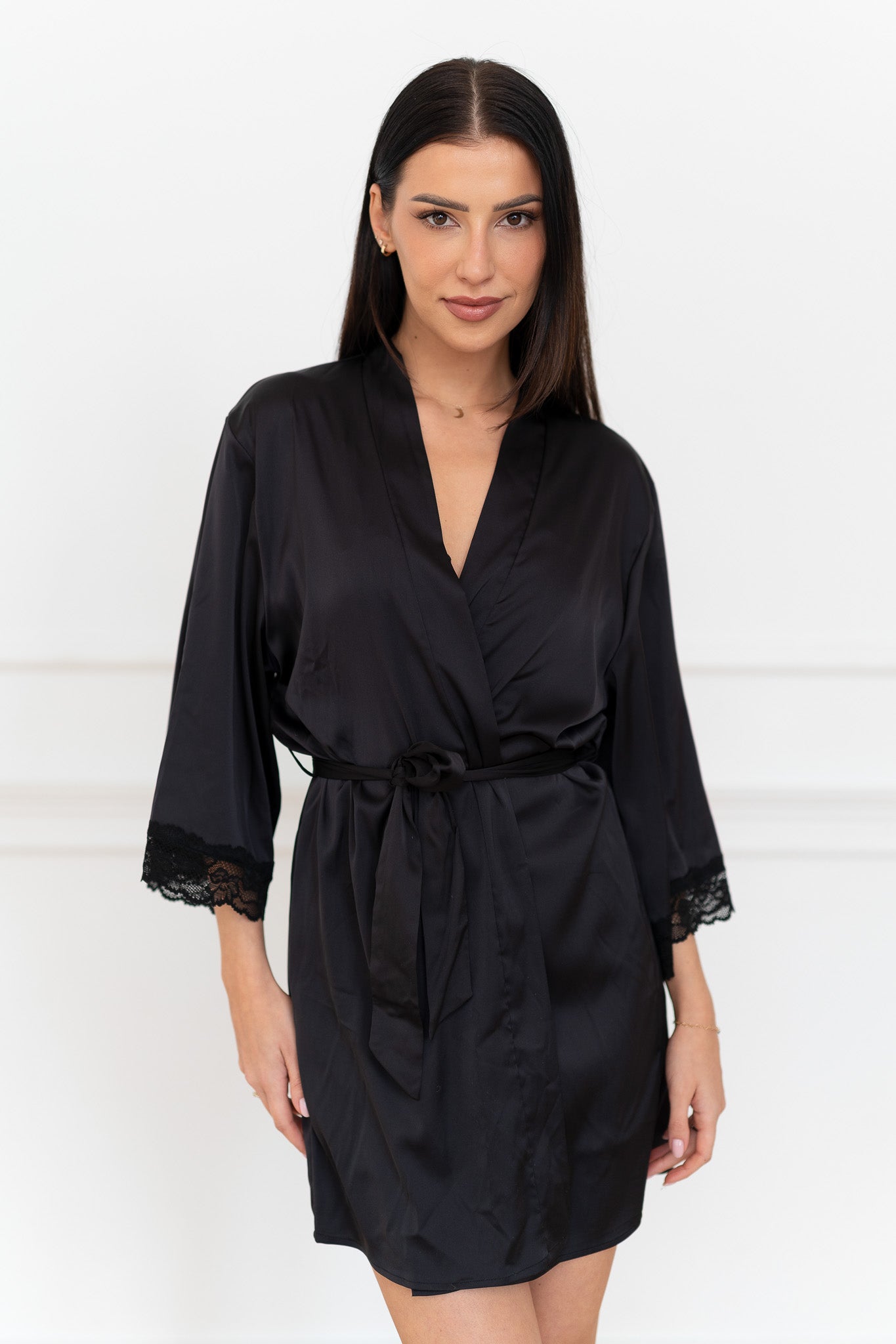 Wrap yourself in sophistication with the Anaïs Luxury Satin Robe. Made from silky-soft satin, this robe drapes effortlessly over the body, creating an elegant and flattering silhouette. The classic black hue is elevated with delicate lace-trimmed sleeves, adding a touch of romantic charm to your loungewear.