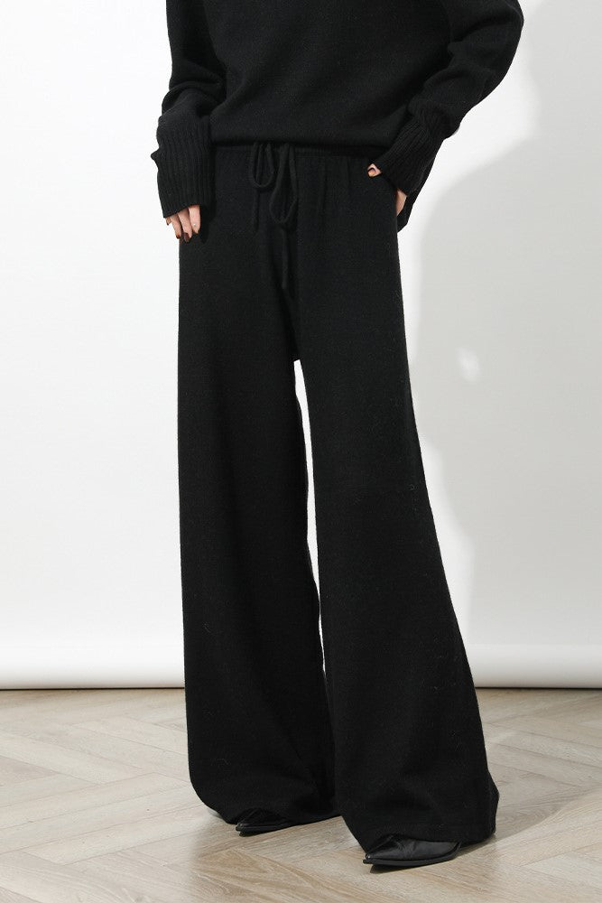 Stay cozy in style with these wide-leg pants, crafted from 100% wool for ultimate comfort and elegance. Featuring a drawstring waist, they offer a customizable fit that’s as practical as it is stylish. The wide-leg design ensures effortless movement, making these pants perfect for both relaxed days at home and casual outings. Pair them with the matching sweater for a coordinated look or dress them up with your favorite top.