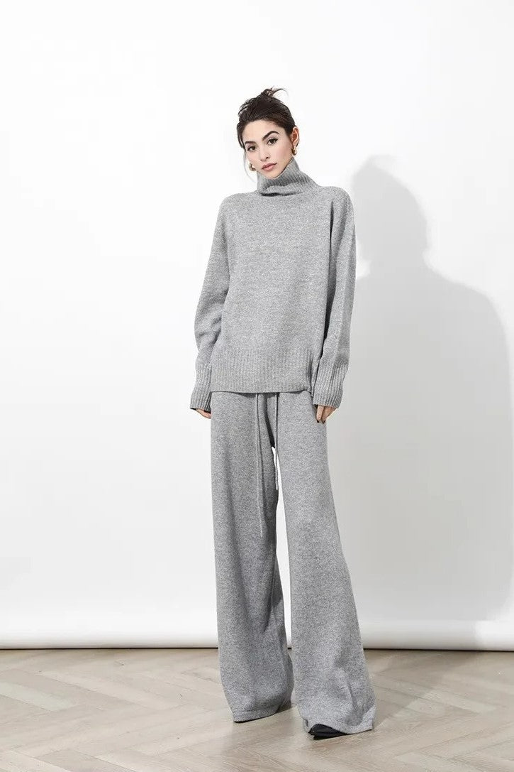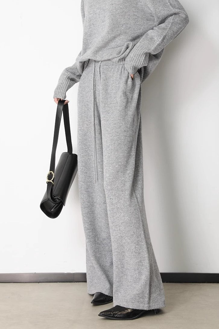 Stay cozy in style with these wide-leg pants, crafted from 100% wool for ultimate comfort and elegance. Featuring a drawstring waist, they offer a customizable fit that’s as practical as it is stylish. The wide-leg design ensures effortless movement, making these pants perfect for both relaxed days at home and casual outings. Pair them with the matching sweater for a coordinated look or dress them up with your favorite top.